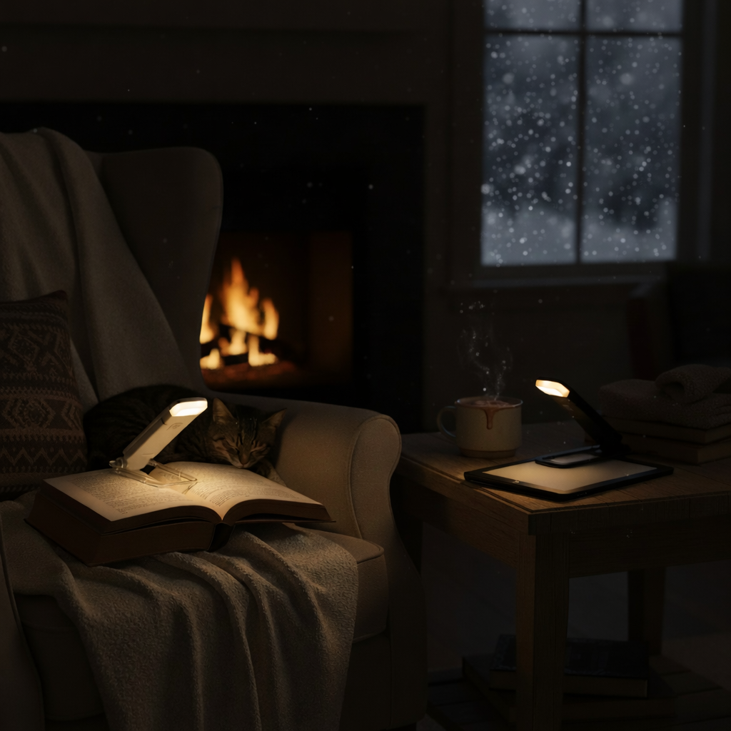 ✓ Éclairage LED directionnel — éclaire précisément les pages pour une lecture confortable dans l’obscurité.